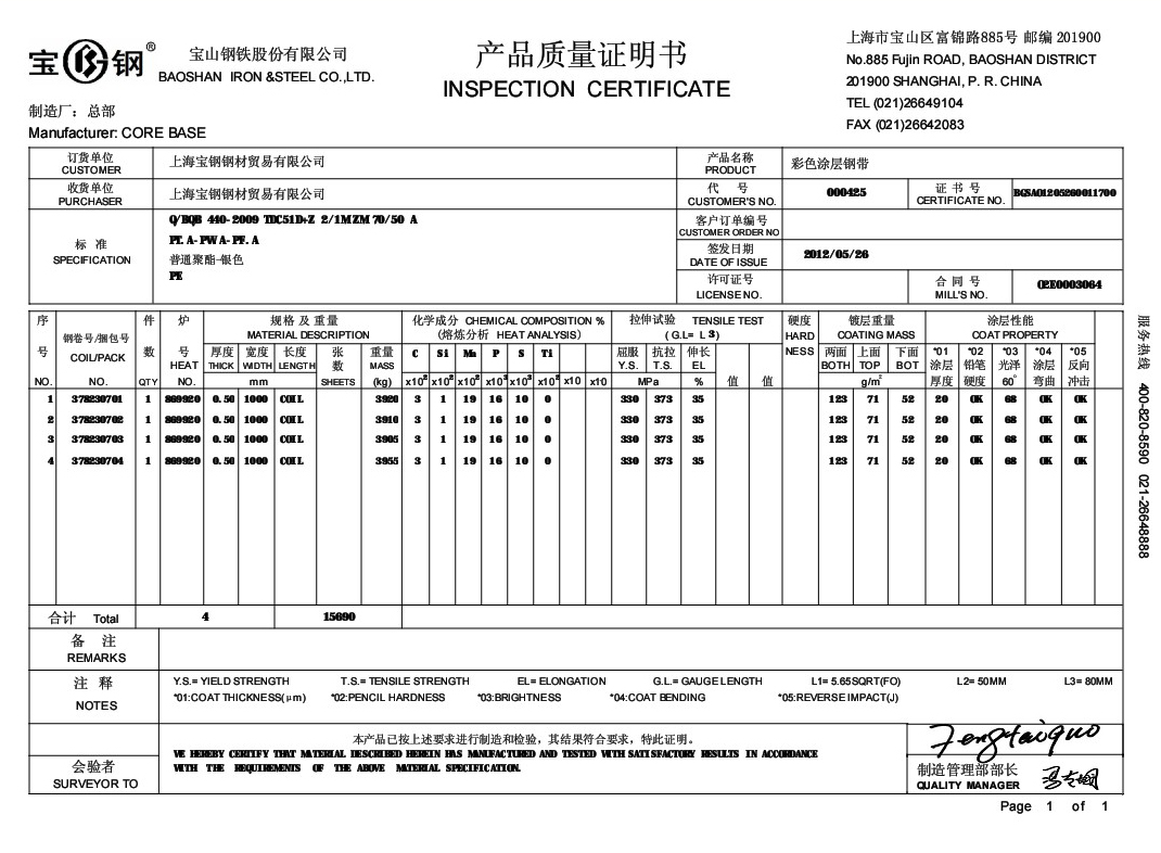 上海志辰实业有限公司座落于经济贸易高度发达的中国钢铁集散地-----上海宝山区。是一家集钢铁易、生产加工、物流配送为一体综合性钢材企业。公司集齐优秀的钢铁销售人才,专业致力于于钢铁涂镀产品。    我公司长期经销上海宝钢(总部)、宝钢黄石、台湾烨辉、联合铁钢、马钢、澳洲BHP(博思格)等国内外各大钢厂的:彩涂卷-彩钢板卷、镀铝锌、热镀锌、冷轧、热轧、电工钢等钢铁产品。在长期销售过程积我们累了丰厚的产品知识。特别是在如:PVDF氟碳彩钢卷、HDP高耐候彩钢板、SMP硅改性彩涂卷、HPC自洁彩钢板,及抗静电彩钢板等高端涂镀产品方面,有着非常专业的特长和深刻研究。  ...[查看详情]